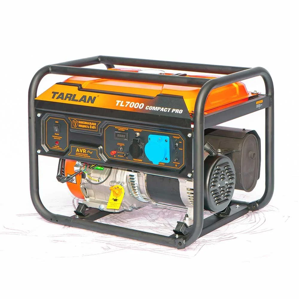 Генератор бензиновый TL-7000 Compact Pro (220В, 5500/6000Вт, 15л.с. (11кВт), 407см3, расход топлива 2,0л/ч, бак 25л, время непрерывной работы 9ч, запуск - ручной, 72кг) TARLAN