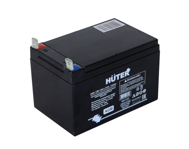 Аккумуляторные батареи свинцово-кислотные, герметичные. Предназначены для запуска бензиновых электрогенераторов, оснащённых электрическим стартером. Могут применяться, так же, и для другой бензиновой техники со схожими техническими параметрами. Аккумуляторы HUTER изготовлены при помощи технологии AGM (Absorbent Glass Mat). Циклический режим: 13.5-13.9 В. Дежурный режим: 14.5-14.9 В. Стартовый ток 140 А.