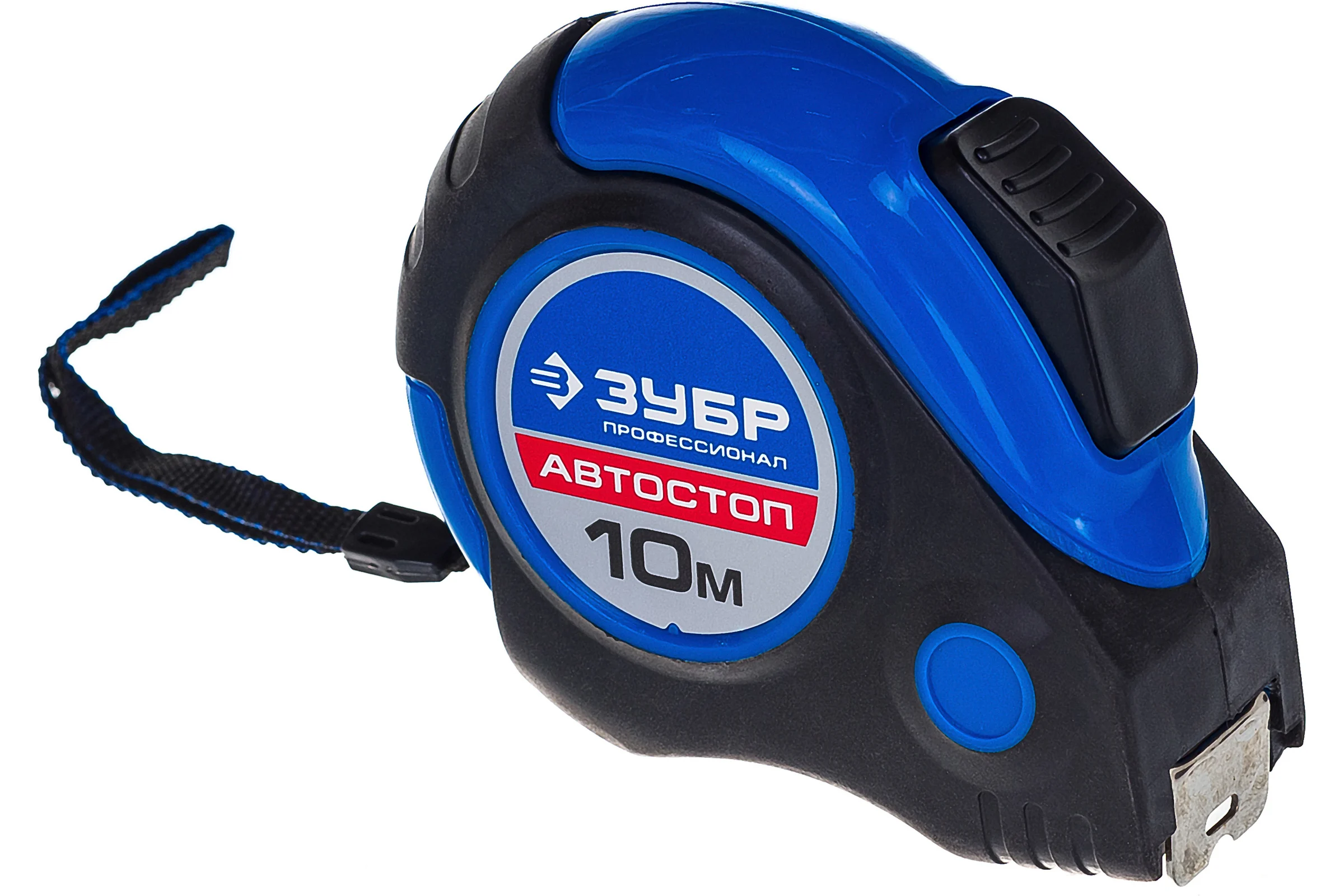 Рулетка с функцией автостоп 10мх25мм ЗУБР ЭКСПЕРТ подходит для использования в профессиональной сфере деятельности. С помощью рулетки можно легко получить высокоточный результат измерений. Инструмент оснащен ударопрочным корпусом, стальным мерительным полотном и функцией автостопа в виде кнопки. Рулетка имеет удобную форму и в процессе работы она не выскальзывает из рук.