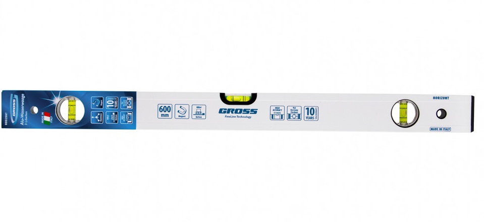 Уровень алюминиевый 600мм, 3 глазка, фрезерованный, магнитный GROSS