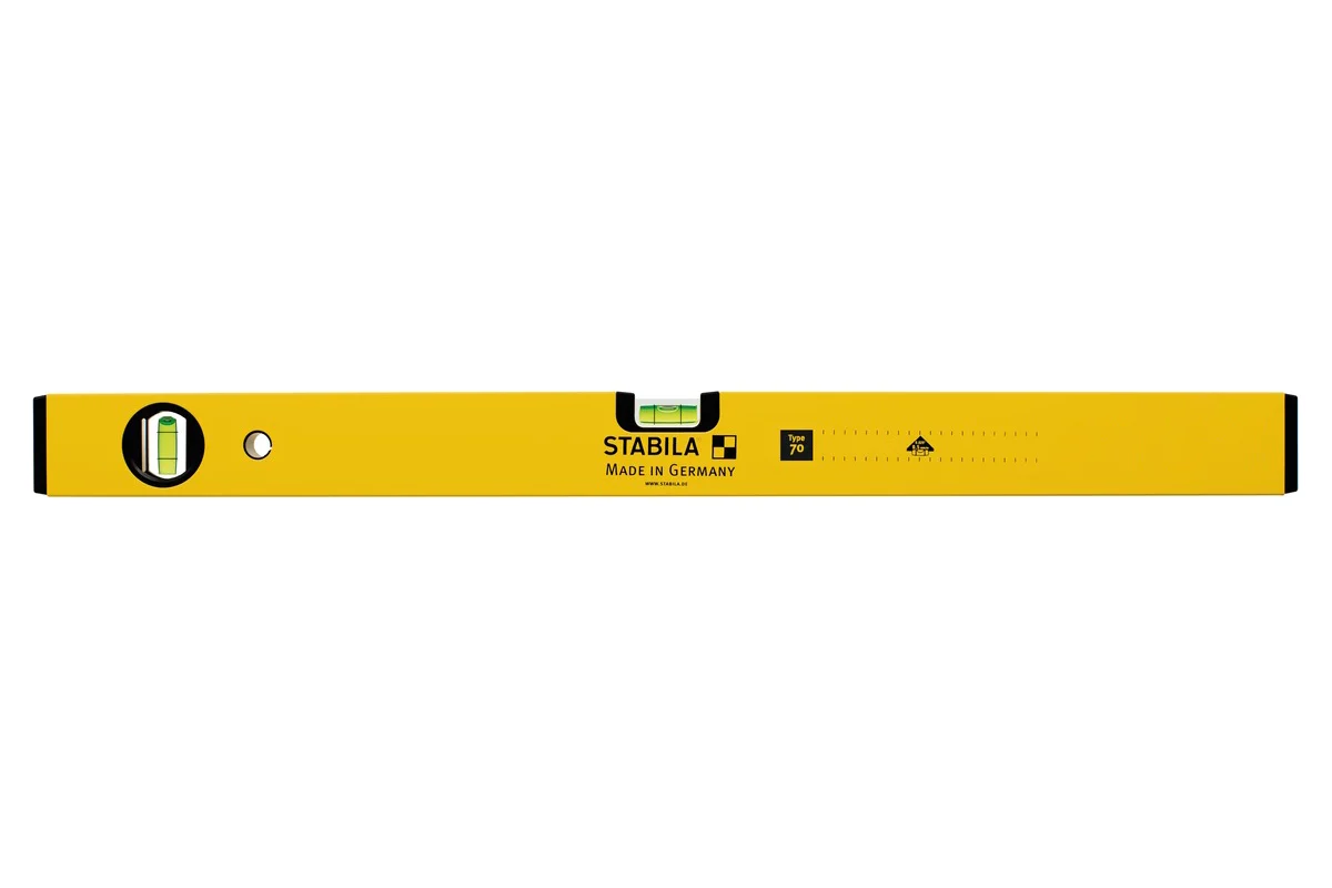 Уровень тип 70, 200 см STABILA 02292 - прочный и надежный ручной инструмент, используемый при работе на строительной площадке, например, для укладки плитки на больших поверхностях. Оснащен вертикальной и горизонтальной ампулами, наполненными прокрашенной жидкостью, которые позволяют максимально точно определить отклонения плоскостей. Металлический профиль с порошковым покрытием, нанесенным электростатическим методом, отличается износоустойчивостью.